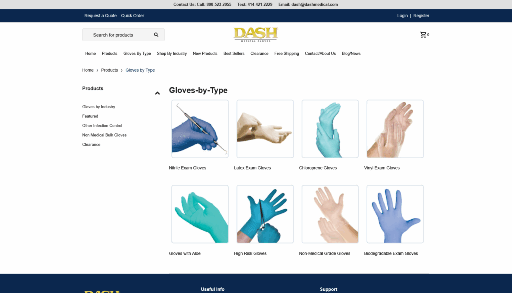 The UnlockCommerce theme’s layout was customized further to meet DASH Medical’s specific needs.
