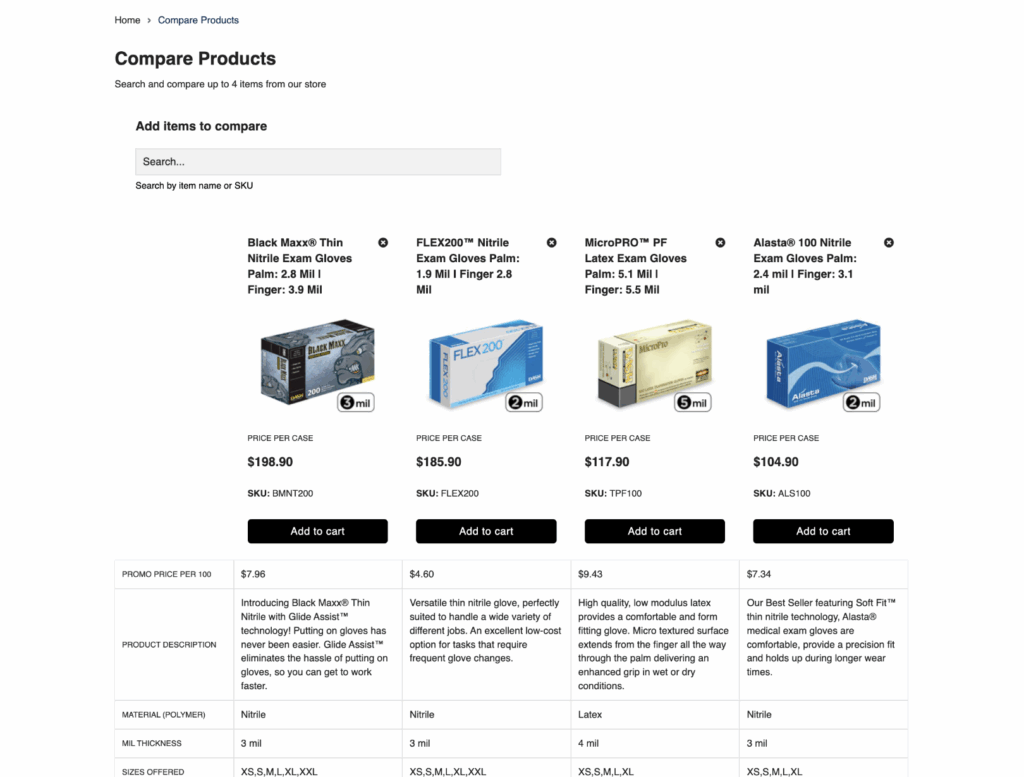 Product Comparison: Customers can easily compare product specifications through this feature, enhanced with improved visuals (colors and spacing).